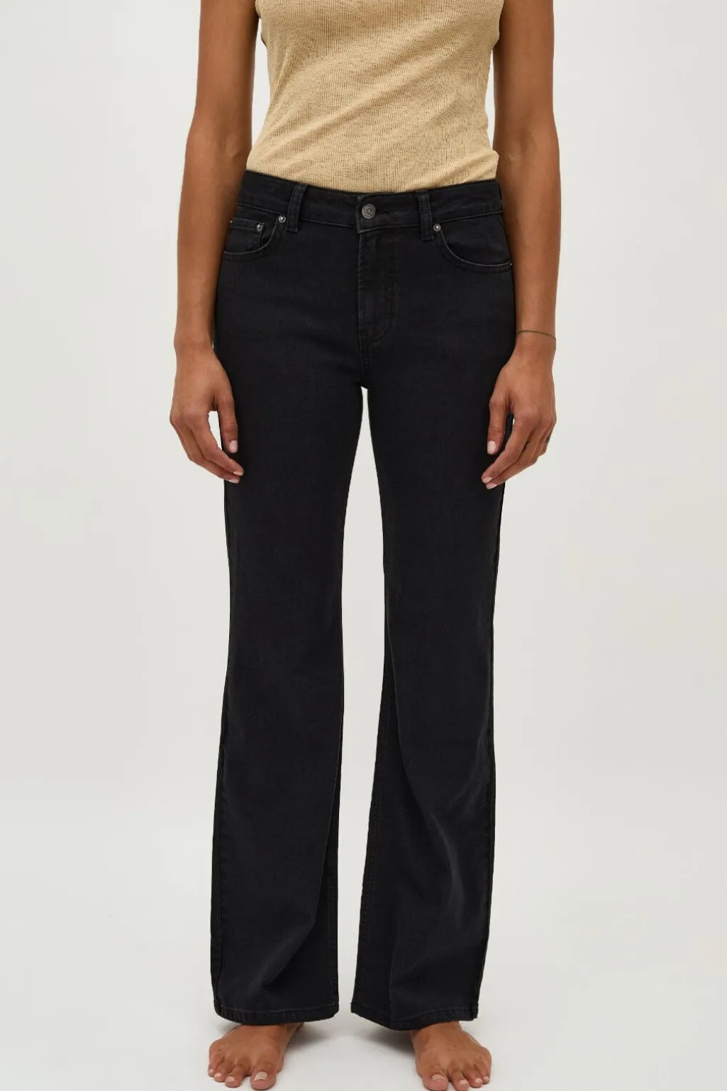 Sorte jeans med lige ben fra Global Funk. De har et klassisk fem-lomme-design og en sort farve, der gør dem nemme at style til forskellige anledninger.