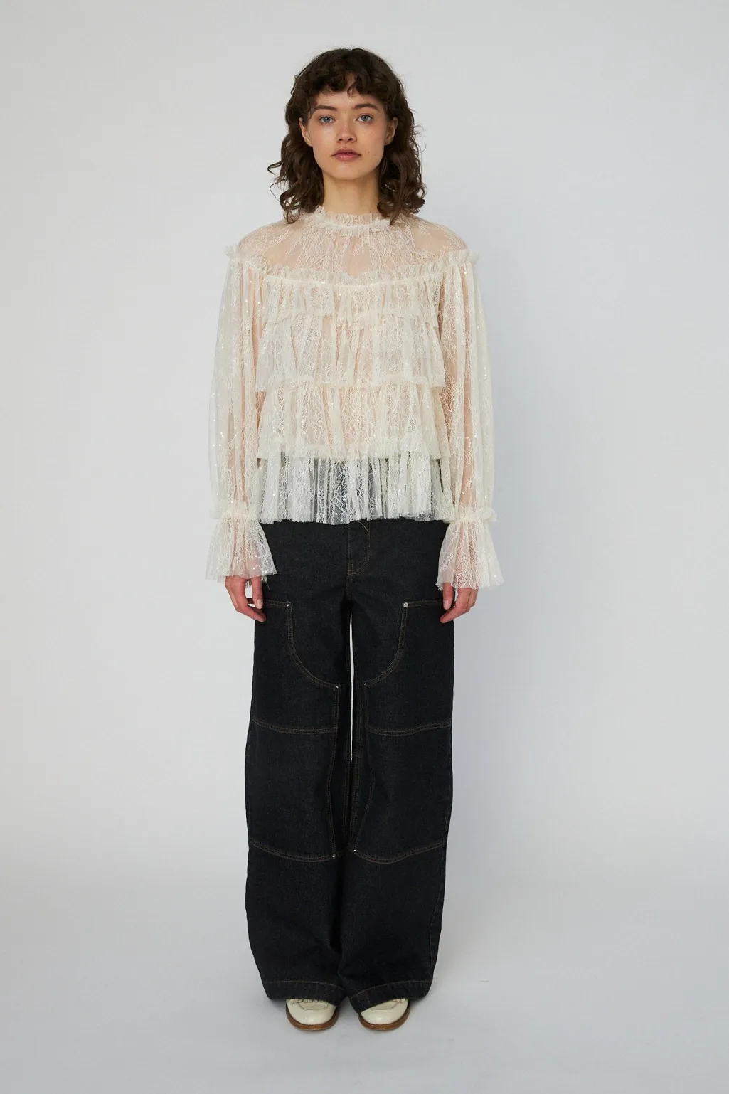 Model: Ls54-2504 – Sheer Frill Lace Blouse