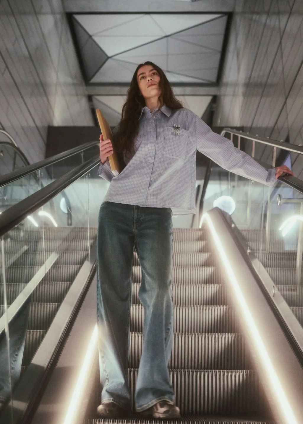 Ternet skjorte fra Modström i lyseblå nuancer. Den har en løs pasform med klassisk krave og lange ærmer. Skjorten kombinerer knapper med pulloverdesign.