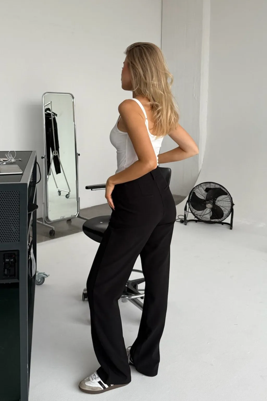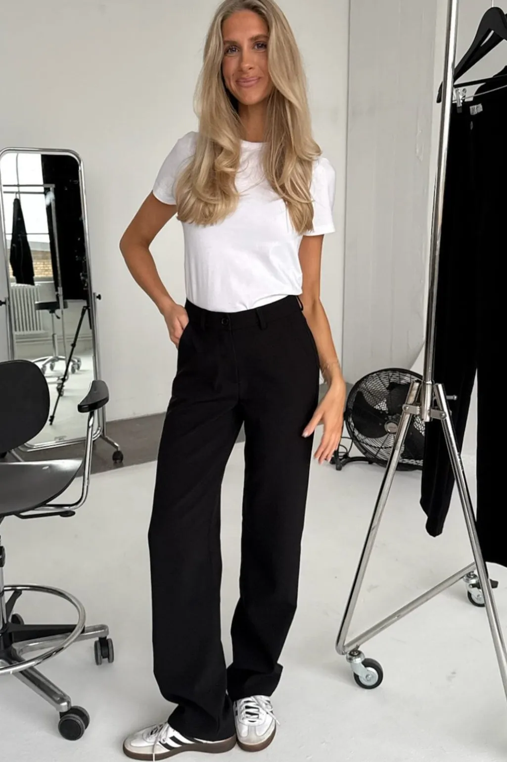 Sorte bukser fra BYIC med lige ben og normal talje. Bukserne har praktiske lommer foran og pyntelommer bagpå samt bæltestropper i taljen.
