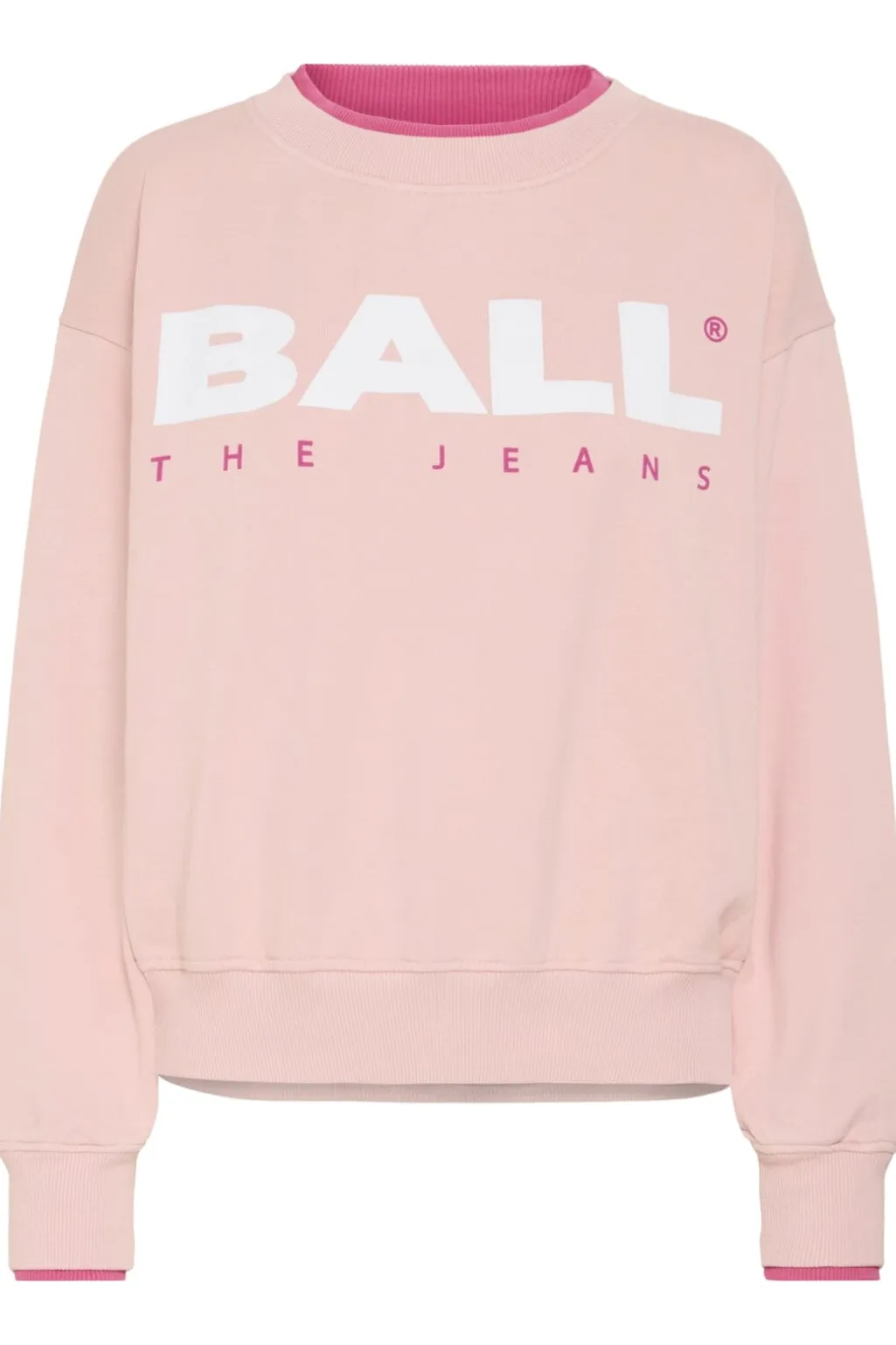 Pink sweatshirt fra Ball med stort hvidt logo-print på forsiden. Sweatshirten har en regular fit og rund hals, hvilket gør den nem at style til forskellige anledninger.