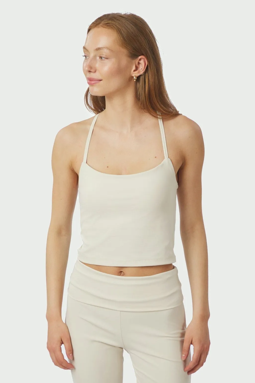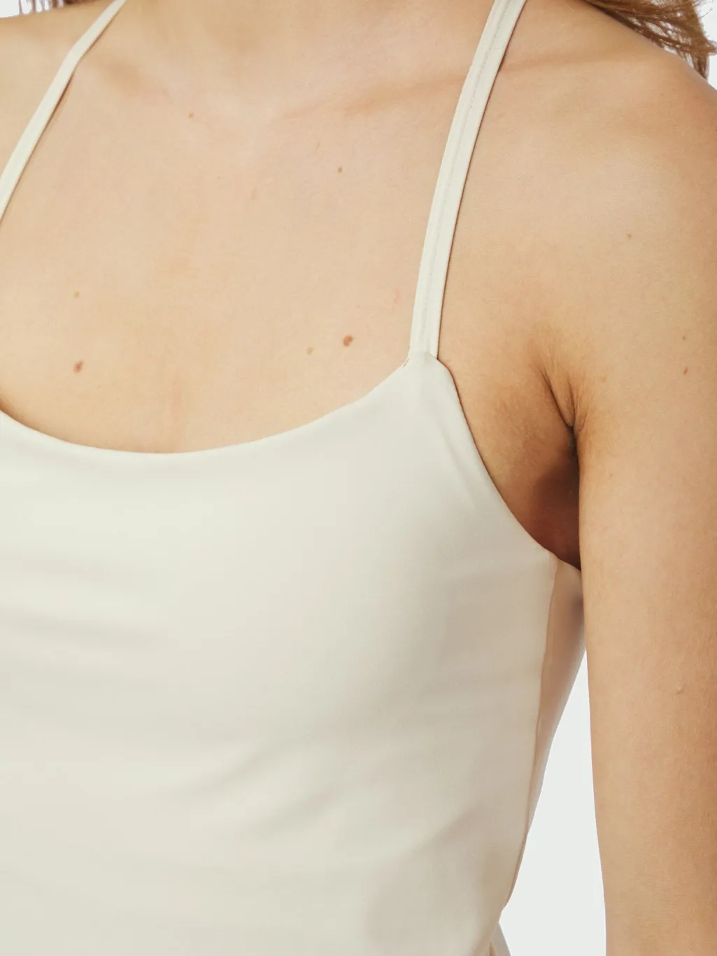 Top fra Neo Noir i elfenben. Lavet af en strækbar blanding af nylon og elastan. Toppen har tynde stropper, en firkantet halsudskæring og en tætsiddende pasform.
