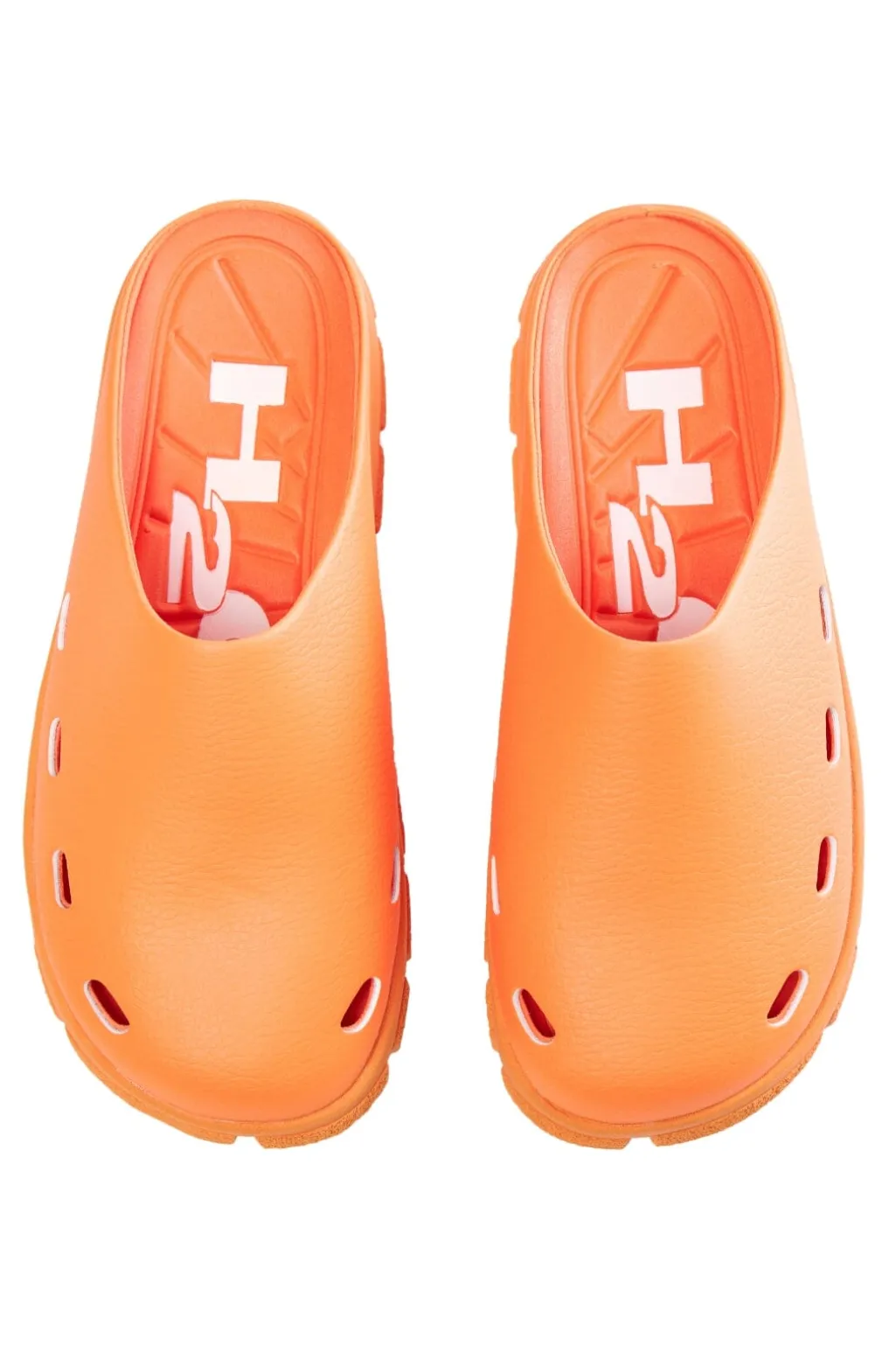 Orange sandal fra H2O med lukket design. Fremstillet af EVA-ydersål og PU-overdel med ventilationshuller langs siderne. Sandalen er robust og velegnet til både hverdagsbrug og udendørsaktiviteter.