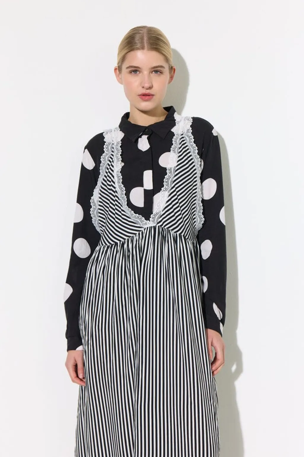 Hunkøn Vicky Dress er en afslappet A-formet kjole med en dyb udskæring både foran og bagpå. Den har fint trimmede kanter i blød blonde for et sofistikeret udtryk.Den ærmeløse design har dybe ærmegab, hvilket bidrager til dens ubesværede og luftige silhuet. Kjolen har diskrete rynker ved taljen for ekstra form, mens slidser i siderne sikrer bevægelsesfrihed og komfort.Vicky Dress er lavet af 100% viskose.