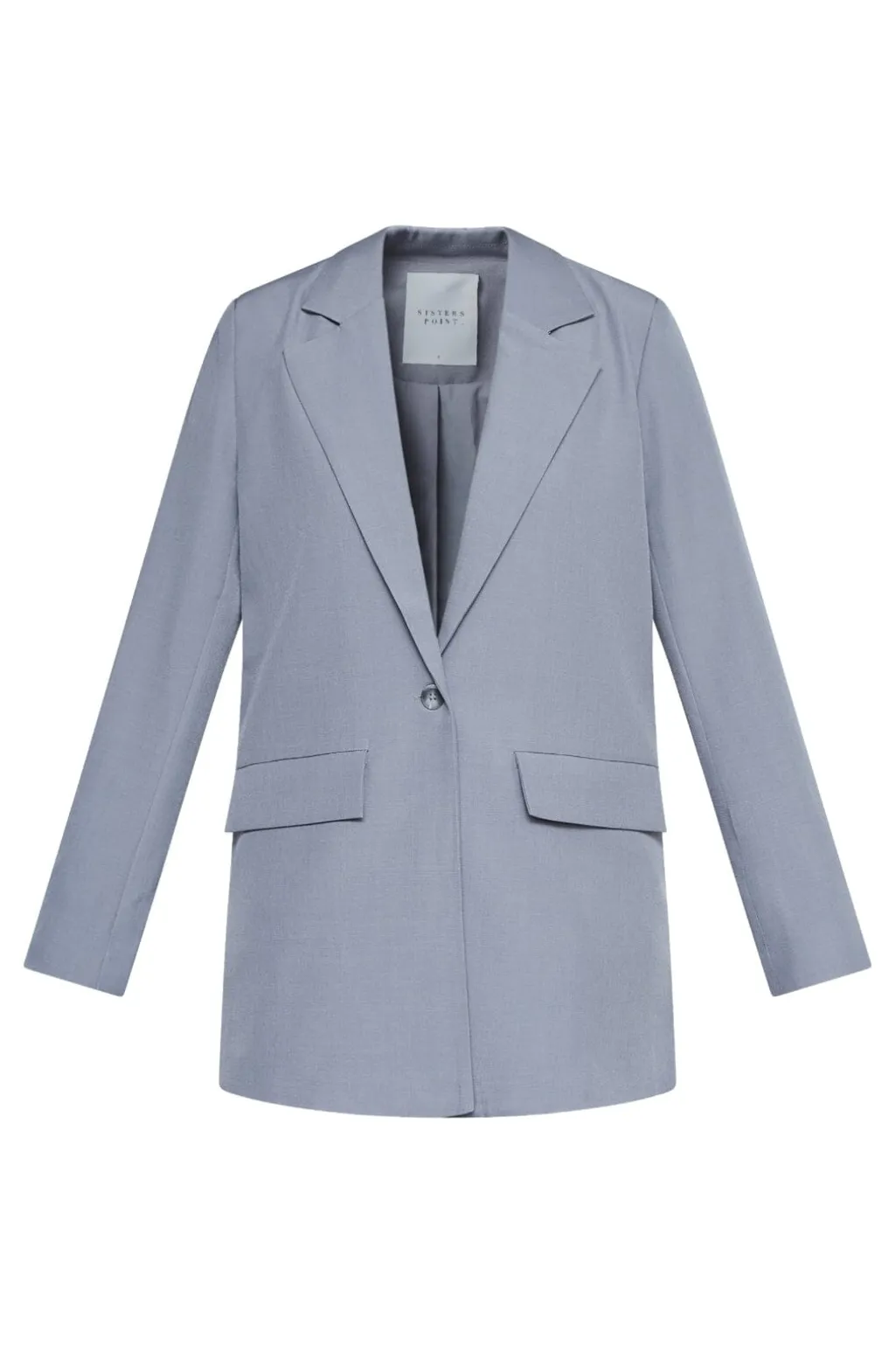 Grå blazer fra Sisters Point i en meleret grå nuance. Blazeren har reverskrave, knaplukning foran og to lommer med klap.