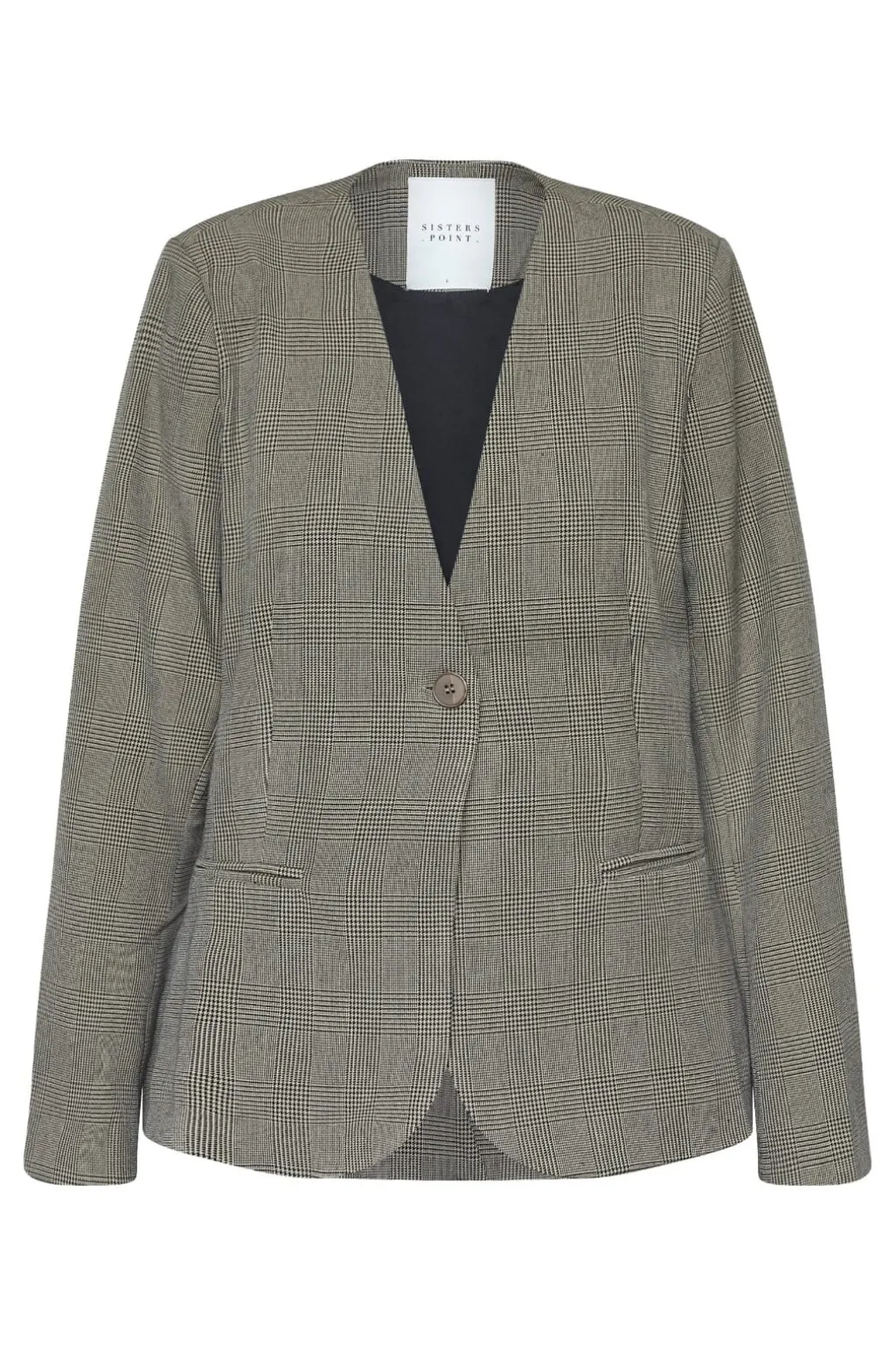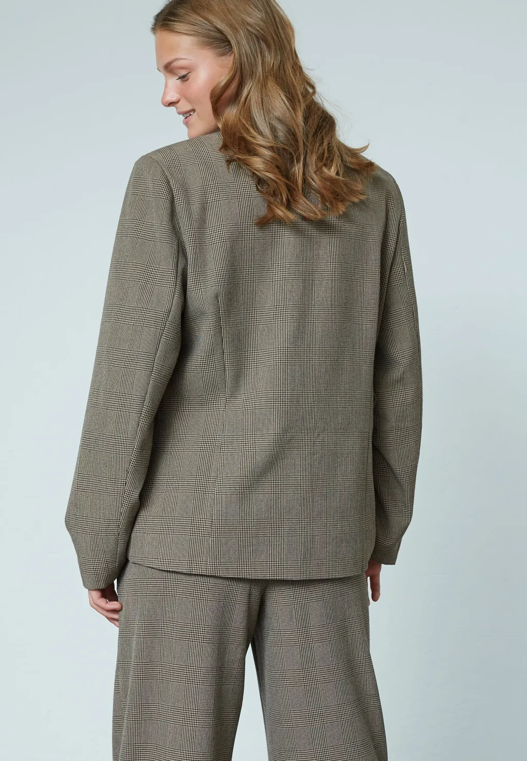 Ternet blazer fra Sisters Point i brune og beige nuancer. Blazeren har et tydeligt ternet mønster og en enkelt knaplukning foran.