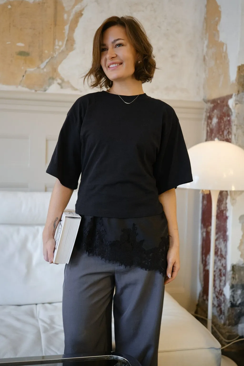 - V-udskæring med blondedetaljer