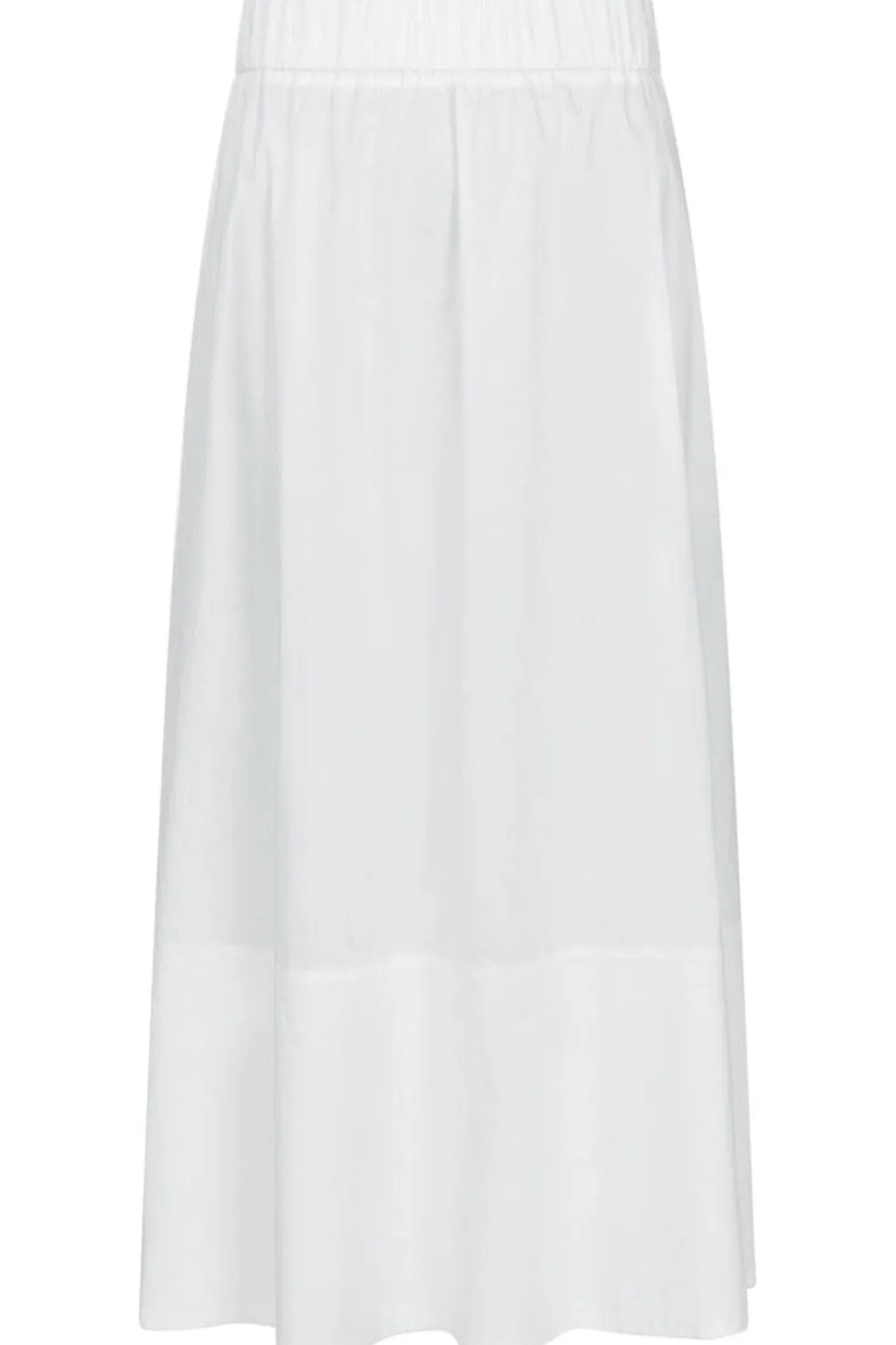 Hvid poplin-nederdel fra Neo Noir med høj talje og elastik i taljen. Nederdelen har en længde til læggene og praktiske lommer i sidesømmene.