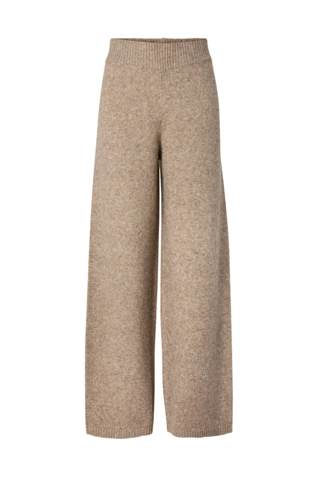 Strikkede bukser fra Y. A.S i en varm svampefarve. Bukserne har bred benvidde og en strikket tekstur med et meleret udtryk. Den elastiske linning giver god bevægelsesfrihed.