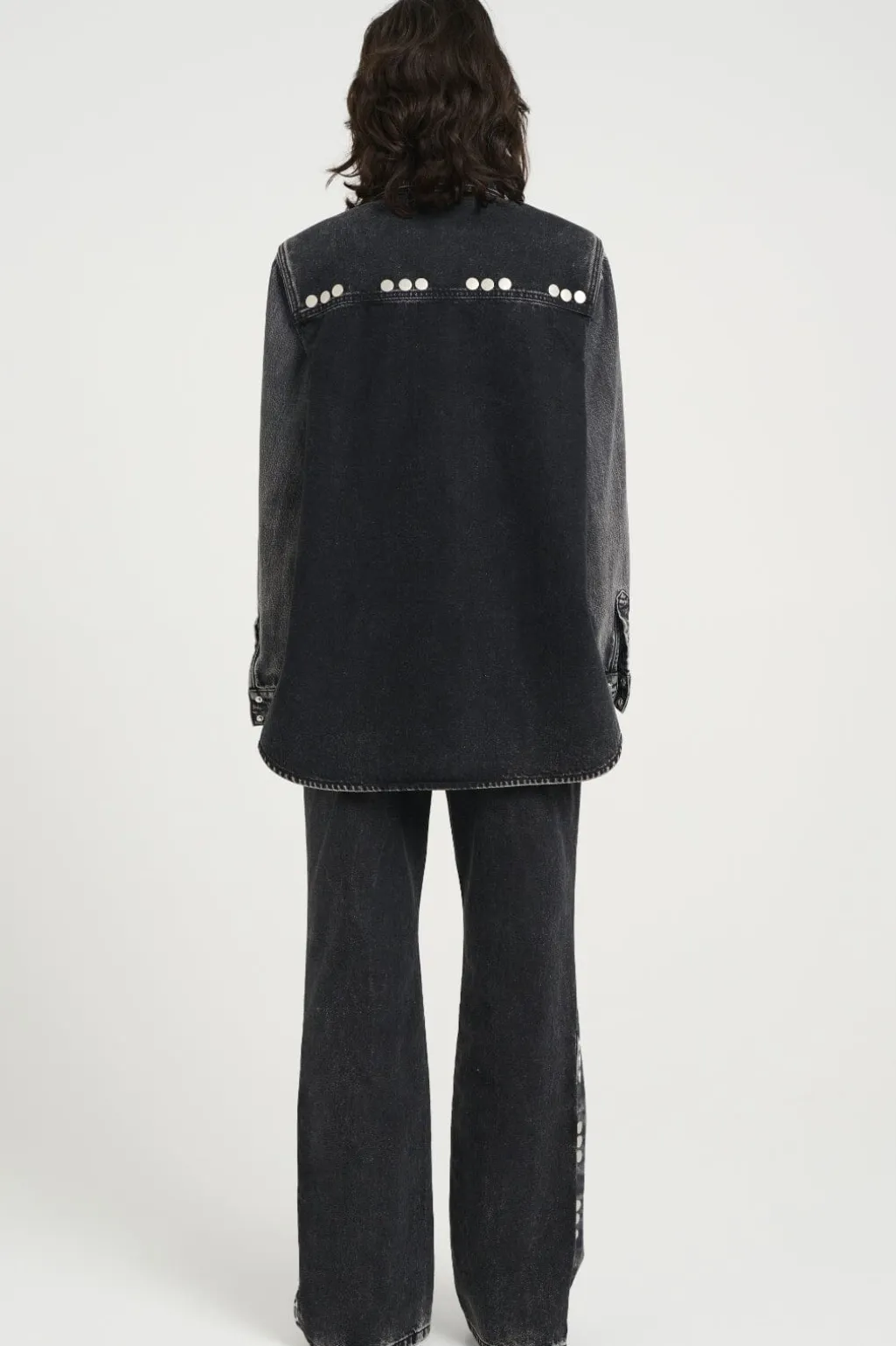 Mørkegrå vaskede jeans med lige ben fra Gestuz. Jeansene har knapper langs sidesømmene og en ankellængde, der fremhæver skoene.